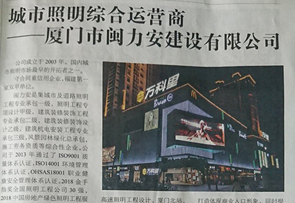 廈門市閩力安建設(shè)有限公司成立于2003年,公司取得市政公用工程施工總承包貳級(jí)、建筑裝修裝飾工程專業(yè)承包壹級(jí)、城市及道路照明工程專業(yè)承包壹級(jí)、電子與智能化工程專業(yè)承包貳級(jí)、消防設(shè)施工程專業(yè)承包貳級(jí)、電力工程施工總承包叁級(jí)、建筑機(jī)電安裝工程專業(yè)承包叁級(jí)、輸變電工程專業(yè)承包叁級(jí)、環(huán)保工程專業(yè)承包叁級(jí)、照明工程設(shè)計(jì)專項(xiàng)甲級(jí)、建筑裝飾工程設(shè)計(jì)乙級(jí)、施工勞務(wù)等資質(zhì)的綜合型企業(yè),公司于2013年通過(guò)了ISO9001質(zhì)量體系認(rèn)證,ISO14001環(huán)境管理體系認(rèn)證,OHSAS18001職業(yè)健康安全管理體系認(rèn)證。